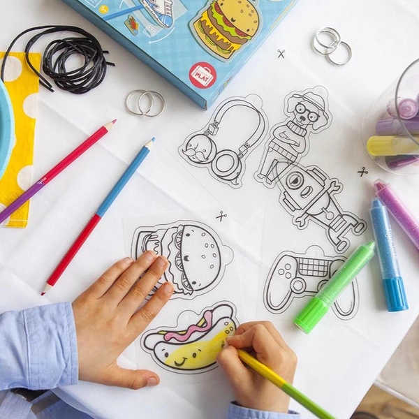 - Zestaw kreatywny, który pozwala na stworzenie wyjątkowej biżuterii z termokurczliwych elementów. Wystarczy pokolorować ilustracje na wstępnie wyciętych arkuszach, umieścić je w piekarniku i obserwować, jak zmniejszają się do 40% swojej pierwotnej wielkośc