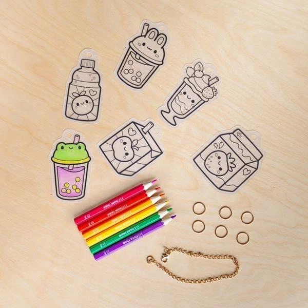 Zestaw Shrinkies – Słodycze od Tiger Tribe to prawdziwa gratka dla małych artystów, którzy kochają tworzyć coś własnymi rękami. W środku znajdziesz wszystko, co potrzebne, aby wyczarować wyjątkową biżuterię i breloki z magicznego, termokurczliwego plastiku. Wystarczy pokolorować przygotowane ilustracje, a następnie włożyć je do piekarnika – po kilku chwilach elementy zmniejszą się do około 40% swojej wielkości i nabiorą intensywnych, wyrazistych barw. Efekt? Piękne, trwałe zawieszki, które wyglądają, jakby powstały w profesjonalnej pracowni.