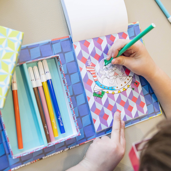 - Zestaw Kolorowanek 3D – Zabawa z Sci-Fi od Tiger Tribe to kreatywny sposób na rozwijanie wyobraźni i odkrywanie świata trójwymiarowych iluzji optycznych.