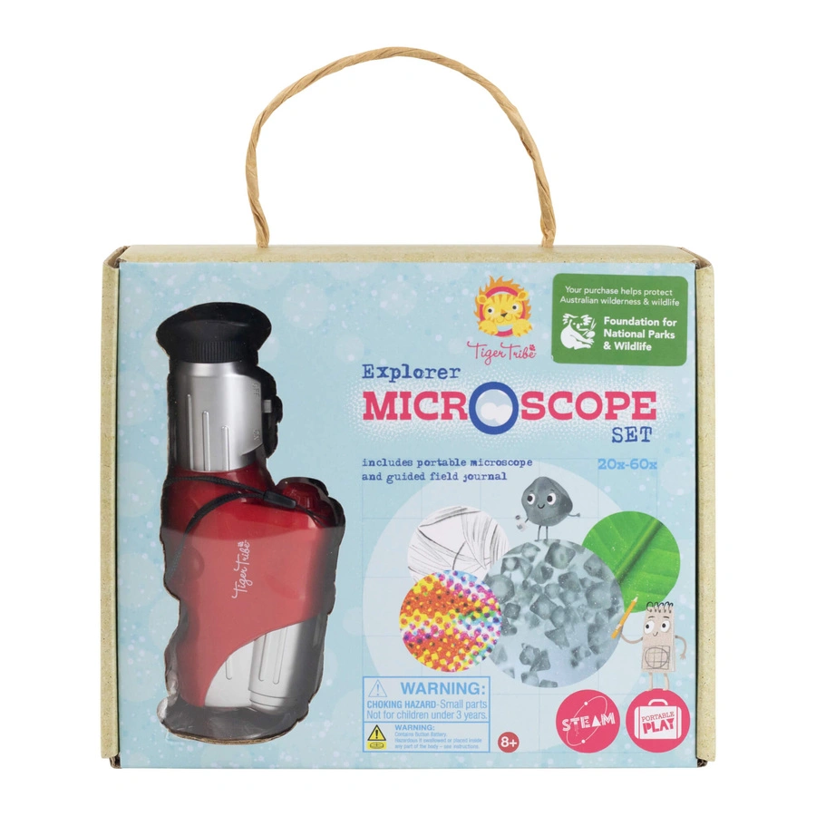 - Przenośny mikroskop z LED od Tiger Tribe rozwija ciekawość i zachęca dzieci do obserwacji natury. Zawiera książeczkę z zadaniami, powiększenia x20 i x60. Idealny dla małych odkrywców