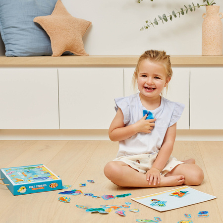 - Zestaw Sensoryczny - Pod wodą od Tiger Tribe rozwija kreatywność i umiejętności motoryczne. Dzieci tworzą podwodne przygody z filcowymi elementami. Idealny dla maluchów 3-5 lat.