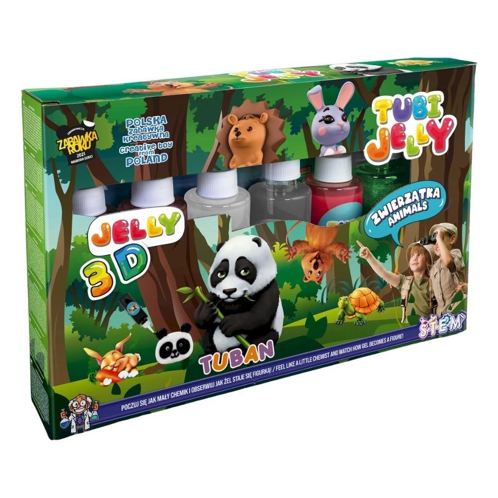 Wejdź do barwnego świata żelowych stworzeń i stwórz własną kolekcję miękkich, trójwymiarowych figurek! Zestaw Tubi Jelly „Zwierzątka” pozwala dzieciom tworzyć przestrzenne żelki, które po zanurzeniu w aktywatorze zmieniają się z płynnych rysunków w elastyczne, błyszczące postacie.