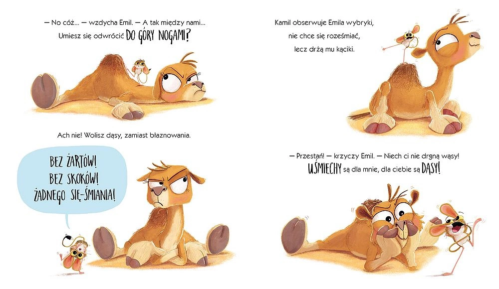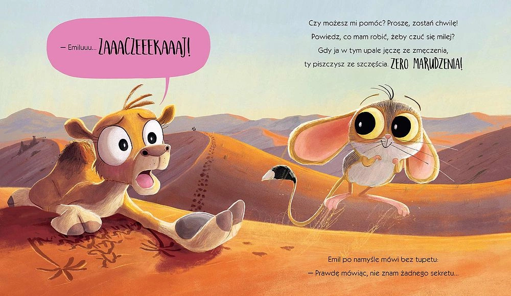- „Wielbłąd, który marudził” to wartościowa lektura, która rozbawi, wzruszy i pomoże lepiej zrozumieć emocje – zarówno te małe, jak i całkiem duże. Idealna na wspólne czytanie i długie rozmowy przed snem.