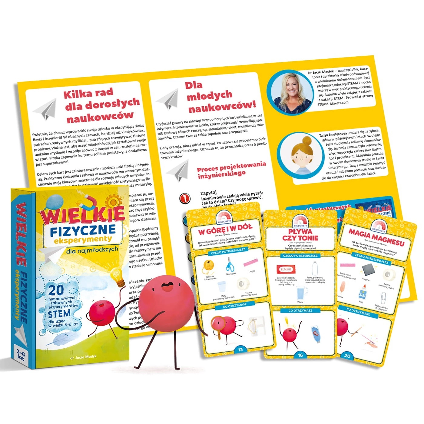 - Ten wyjątkowy zestaw kart to doskonały sposób, by wprowadzić dziecko w fascynujący świat nauki. Dzięki prostym, kolorowym instrukcjom nawet najmłodsi odkryją, jak działa otaczający ich świat – poprzez zabawę, doświadczenie i obserwację.