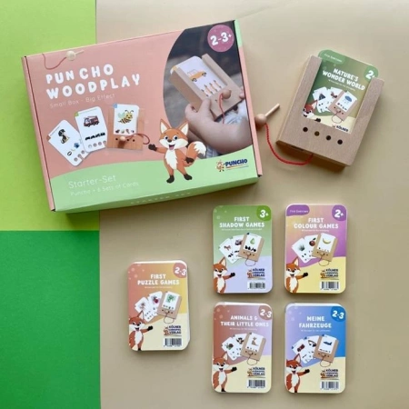 Karty przygotowano we współpracy z nauczycielami, aby wspierały rozwój poznawczy już od 2. roku życia. Ćwiczenia wzmacniają koncentrację, pamięć, logiczne myślenie oraz percepcję wzrokową, a praca drewnianym patyczkiem doskonali motorykę małą. Dwustronny druk w języku niemieckim i angielskim pomaga dziecku osłuchać się z obcymi językami, bez konieczności rozumienia zapisanych treści.