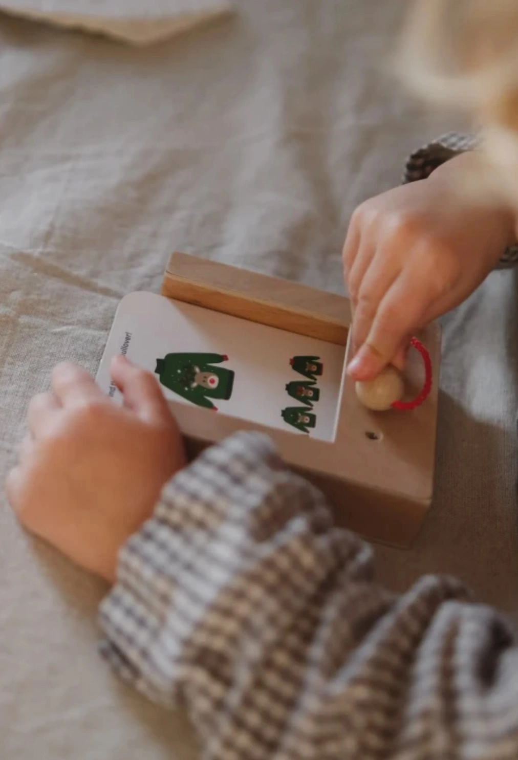 Drewniane pudełko z mechanizmem autokorekty + sześć zestawów kart