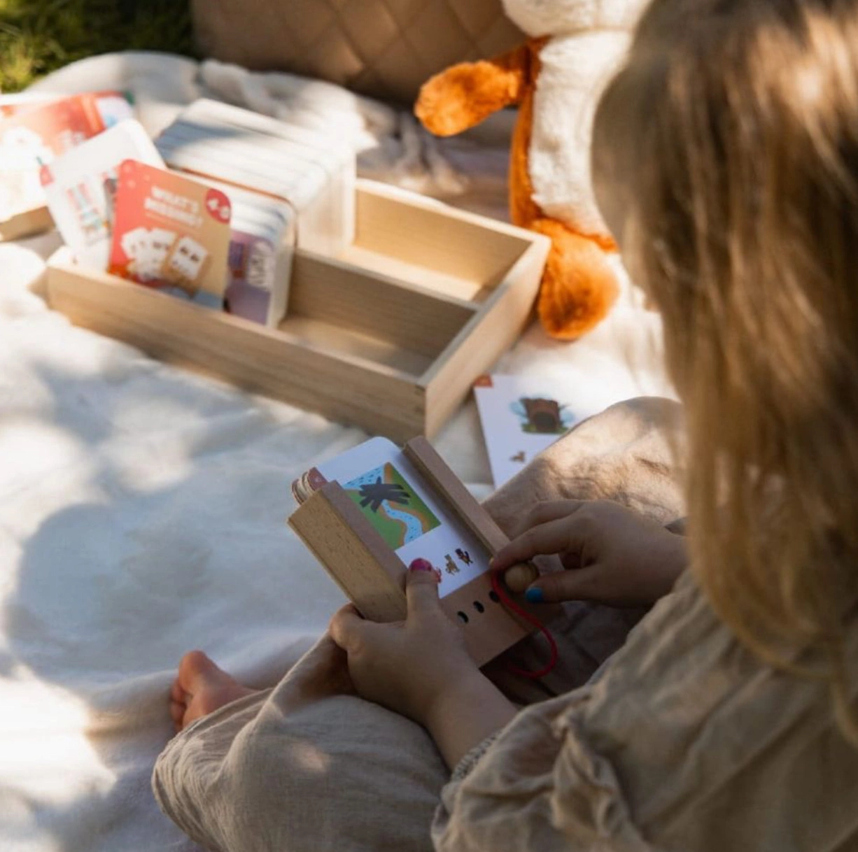 Zestaw Startowy WiemTo to pomysłowe narzędzie edukacyjne, które wspiera rozwój najmłodszych poprzez swobodną i naturalną zabawę. W komplecie znajduje się drewniane pudełko z mechanizmem autokorekty oraz 24 karty z zadaniami opracowanymi we współpracy z pedagogami. Całość została stworzona z myślą o tym, by ćwiczyć koncentrację, pamięć, logiczne wnioskowanie oraz sprawność dłoni — w spokojny, uważny i w pełni bezekranowy sposób.