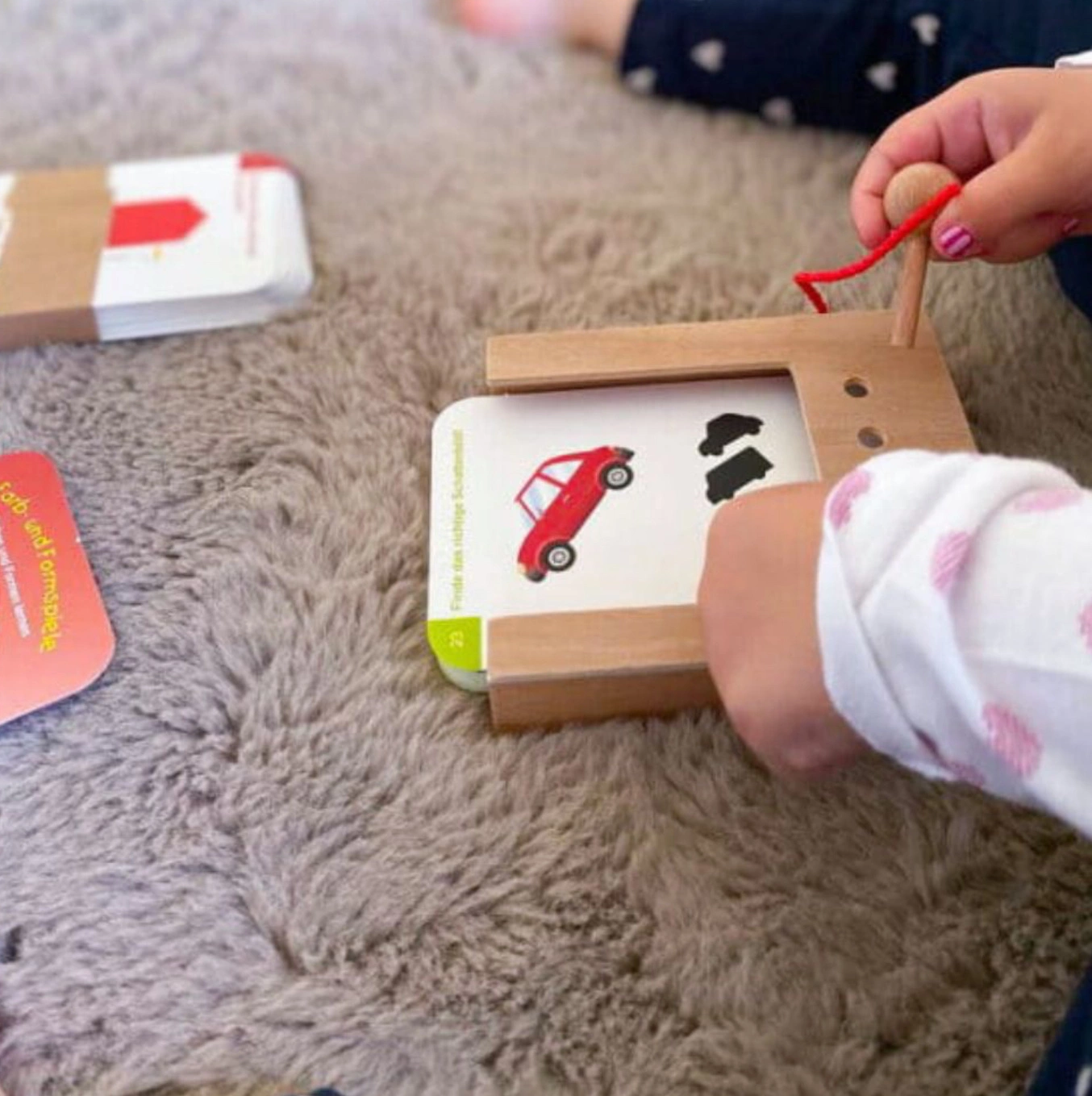 Karty zawierają ćwiczenia o stopniowo rosnącym poziomie trudności: od prostych poleceń typu „dopasuj cień”, aż po bardziej wymagające zagadki wspierające spostrzegawczość. Dzięki wbudowanemu mechanizmowi autosprawdzania maluch sam odkrywa, czy odpowiedź jest właściwa, co zachęca go do niezależnego działania i wzmacnia poczucie pewności siebie.