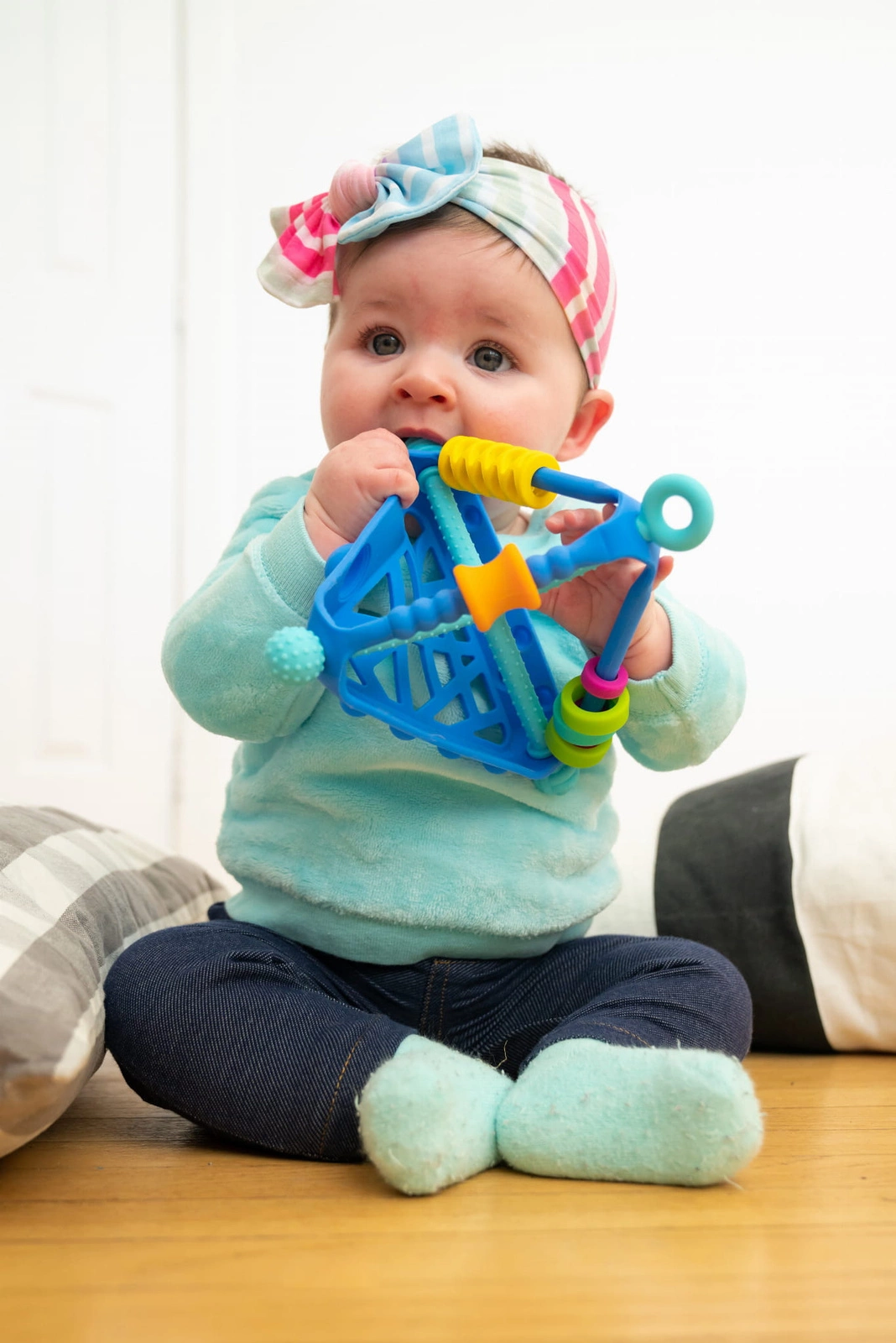 - Wielofunkcyjna forma – zabawka do gryzienia, ściskania, chwytania, zgniatania i wciskania