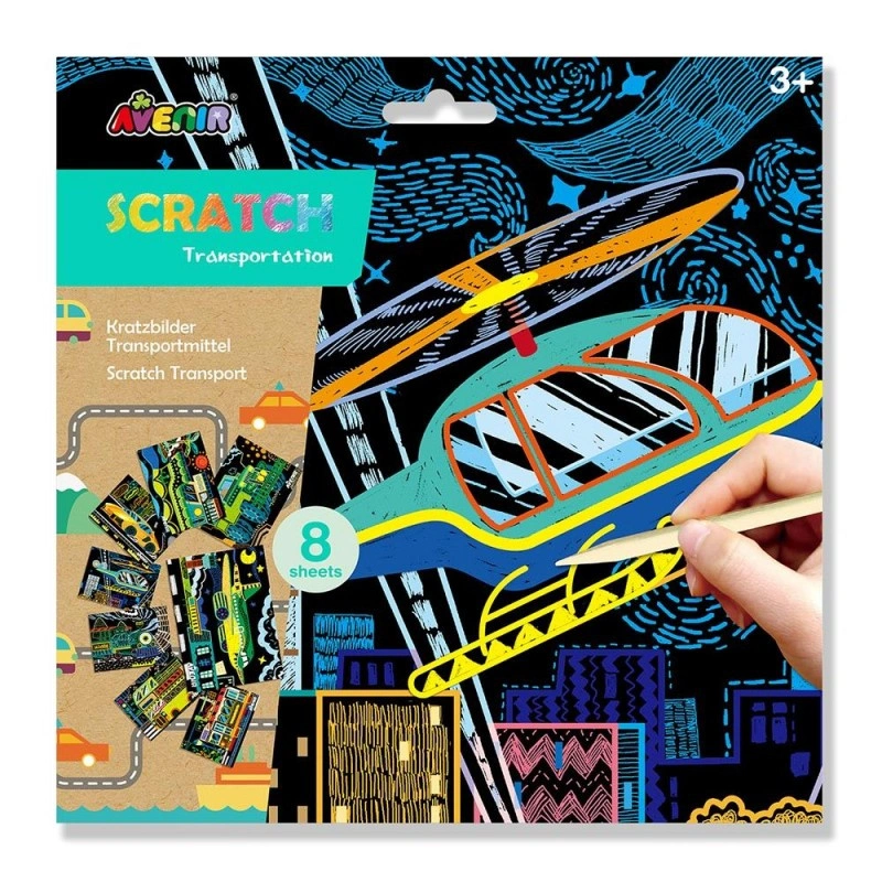 - Zestaw do zdrapywania AVENIR „Transport” pozwala dziecko poczuć się jak prawdziwy artysta i zanurzyć się w magicznej atmosferze tworzenia.