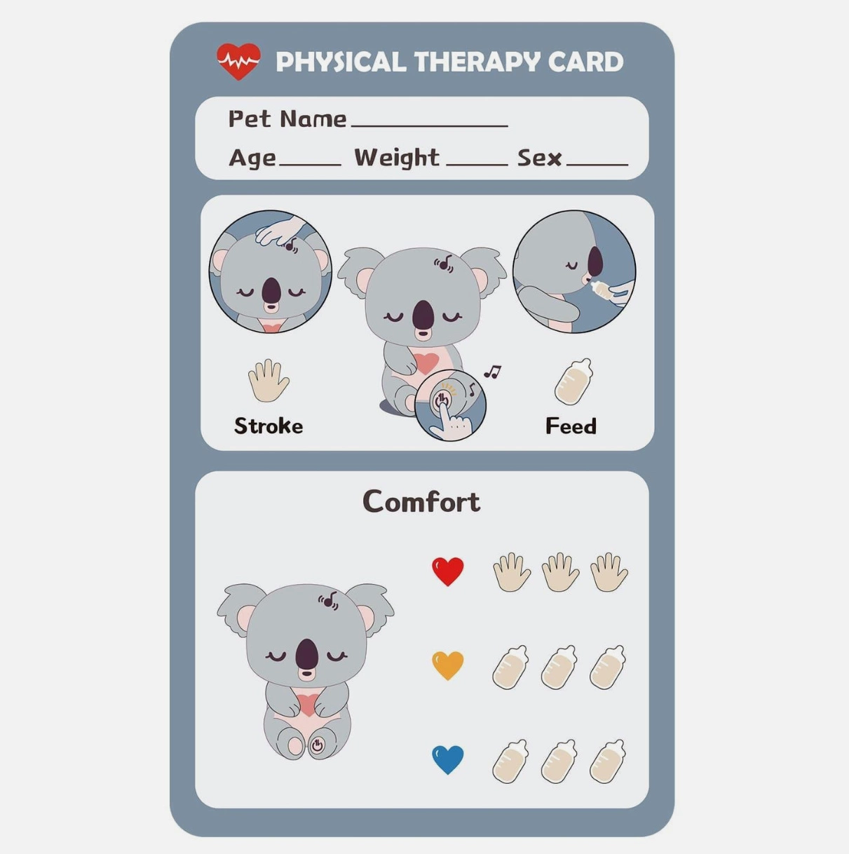 Za pomocą dołączonej karty diagnostycznej dziecko może odkryć, czego potrzebuje jego przyjaciel i jak mu pomóc. Wystarczy odrobina troski, karmienie i przytulanie, by serduszko znów rozbłysło radosnym kolorem.