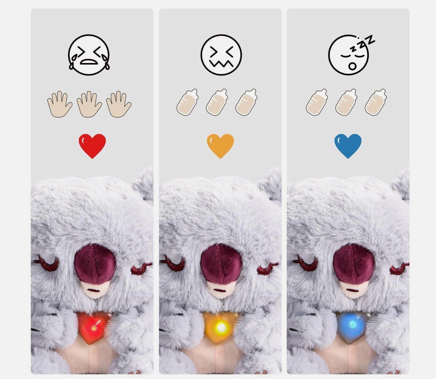 Dzięki świecącemu serduszku i uroczym dźwiękom koala uczy rozpoznawania emocji oraz reagowania na potrzeby innych.