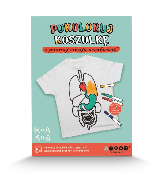 Zestaw edukacyjny: T-shirt z narządami + flamastry do kolorowania