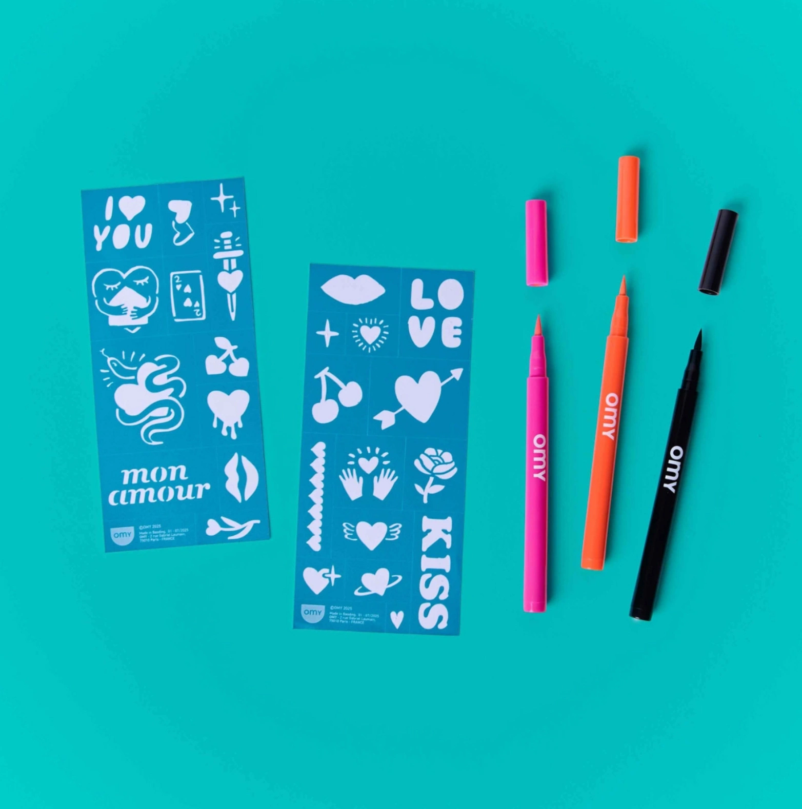 ZESTAW 3 MARKERÓW DO TWORZENIA TATUAŻY - I LOVE YOU