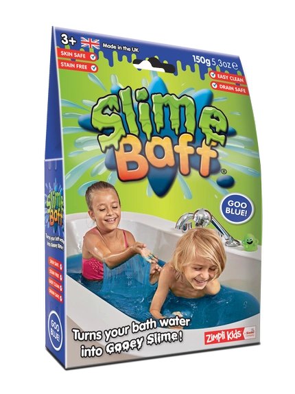 Od dziś zabawa w wannie będzie strrrasznie fajna. Dzięki proszkowi Slime Baff powstanie prawdziwie oślizły, niebieski glut, który zapewni dzieciakom mnóstwo frajdy podczas kąpieli. Wystarczy dosypać proszku do wody, a wytworzy się slime, idealny do sensorycznej zabawy. Przyciągający wzrok kolor, żelowa konsystencja i śliska faktura aż proszę się, by dotykać, przelewać i rozdzielać gluty. Choć brzmi to nieco odrażająco, dzieci pokochają ten rodzaj zabawy. Slime to uczta dla zmysłów i poznawcza przygoda. Maluch z przyjemnością będzie przyglądał się magicznemu procesowi zamiany wody ciągnący się szlamik.