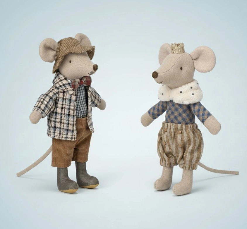 Ten wyjątkowy zestaw myszek Maileg łączy w sobie ciepło rodzinnych relacji z bajkową elegancją i przygodą. Klasyczny Dziadek Mysz, pełen spokoju i mądrości, oraz Książę Mysz, elegancki bohater wielkich opowieści, zapraszają dzieci do tworzenia własnych historii – od codziennych domowych scenek po magiczne królewskie przygody.