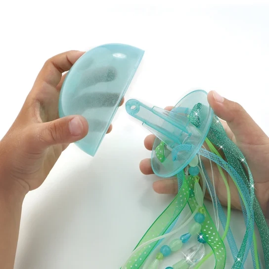 Stwórz świecące dekoracje – Zestaw zawiera wszystko, co potrzebne do wykonania 3 meduz z efektem luminescencji. Gotowe ozdoby można zawiesić na specjalnym uchwycie w kształcie koralowca, który pięknie prezentuje się na ścianie.