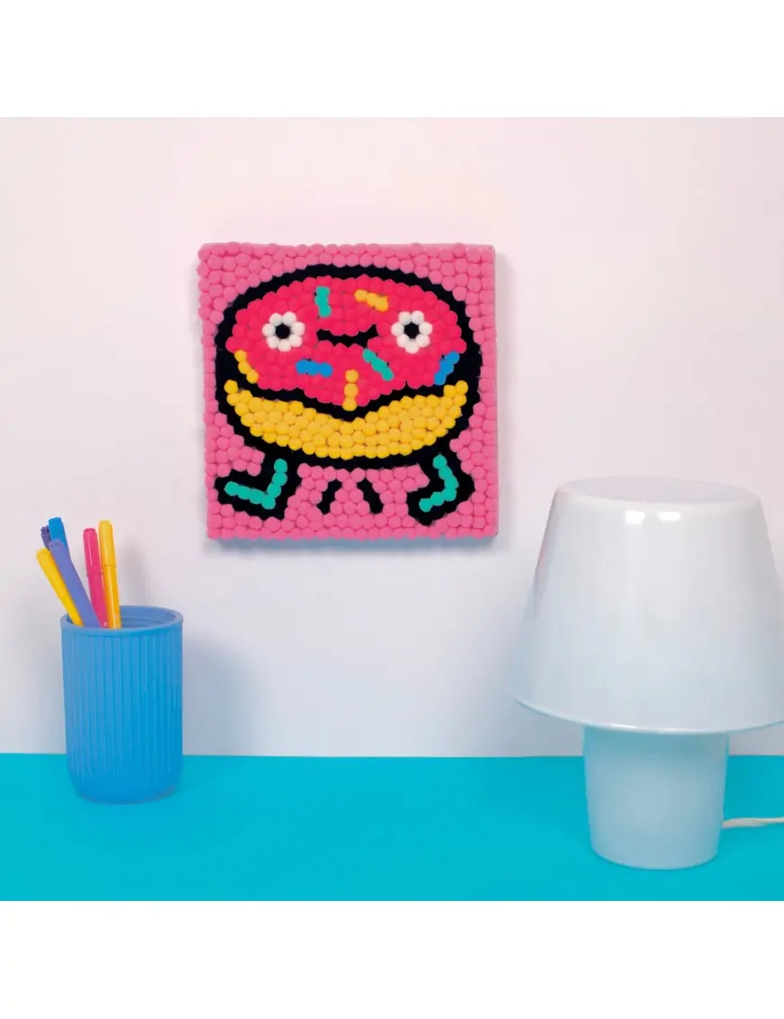 Pomponowy pączek brzmi nierealnie, ale przed Wami kreatywny zestaw, który pozwoli na stworzenie prawdziwych dzieł sztuki! W zestawie znajduje się aż 500 bardzo miękkich, uroczych i kolorowych pomponów, które można wykorzystać do stworzenia wyjątkowego wzoru – DONAT.