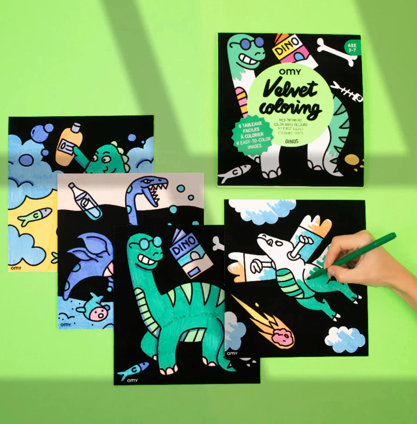 Welwetowe kolorowanki „Dinozaury” – zestaw kreatywny od OMY