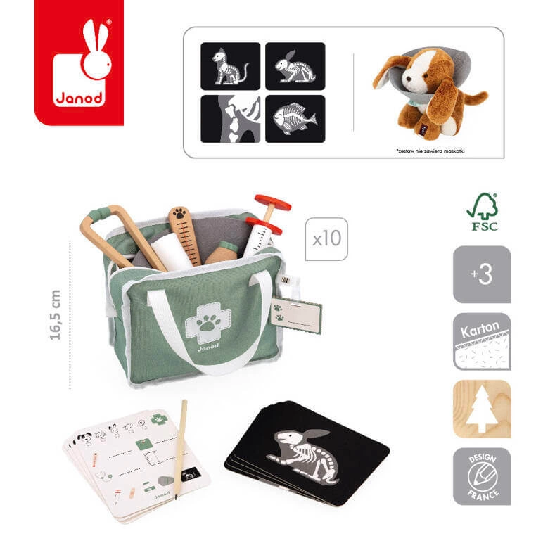 - Zestaw weterynarza marki Janod to doskonała zabawka dla dzieci, które uwielbiają opiekować się zwierzętami i odgrywać scenki z codziennego życia.