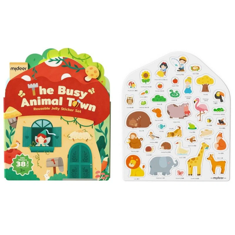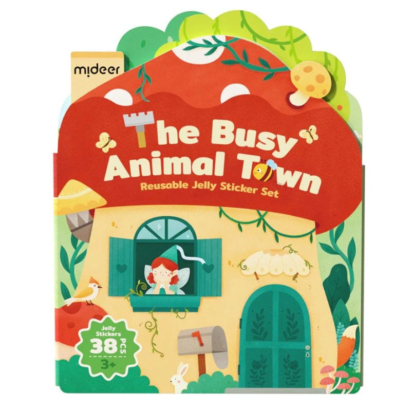 - The Busy Animal Town od Mideer to kreatywny zestaw żelowych naklejek, który zamienia zwykłą powierzchnię w planszę do opowiadania historii.