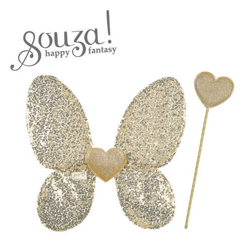 - Złoty zestaw Souza! z skrzydłami (35 cm) i różdżką, pokryty cekinami i brokatem. Idealny na bal przebrań i urodziny. Doskonały prezent dla dzieci w wieku 3-10 lat.