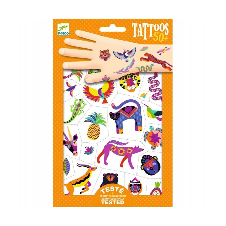 - Dwa arkusze pełne kolorowych tatuaży z motywami egoztycznymi. Produkt przeznaczony dla dzieci od 3 roku życia. Bezpieczny dla wrażliwej, dziecięcej skóry.