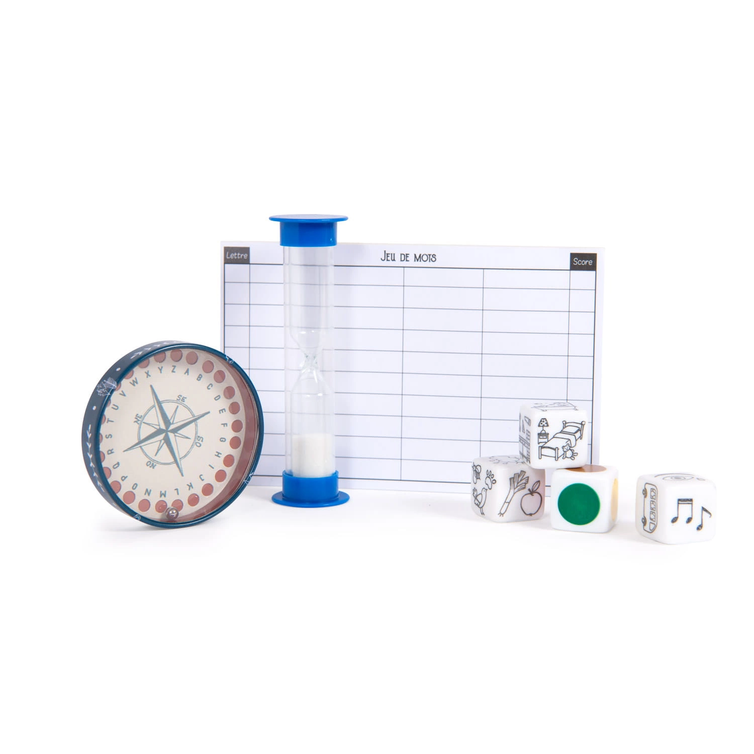 Zestaw zawiera: - Koło z alfabetem - Cztery kostki z motywami - Ołówki i kartki do zapisywania słów - Klepsydrę do odmierzania czasu Odpowiednia dla dzieci od 5 roku życia i jest doskonałą rozrywką zarówno w domu, jak i w grupie przyjaciół. Wymiary opakowania: 13,5 x 13,5 x 4 cm.