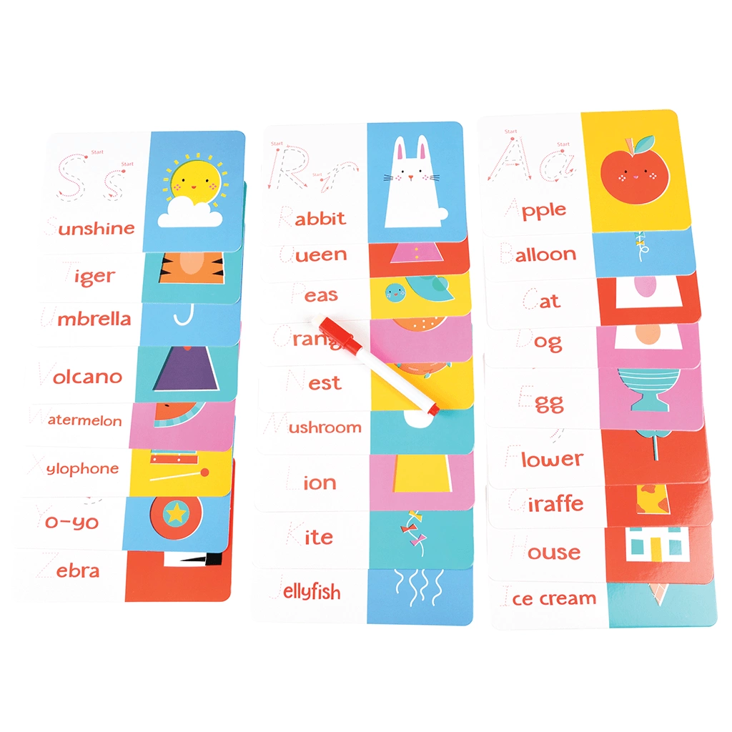 Karty edukacyjne zmazywalne – umożliwiają wielokrotne ćwiczenie pisania i naukę liter.