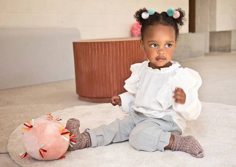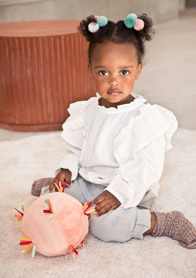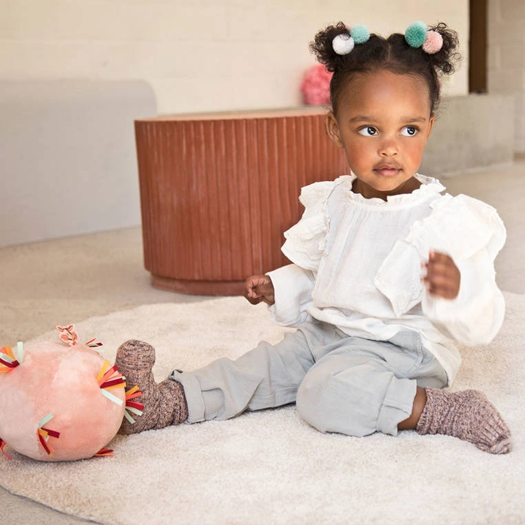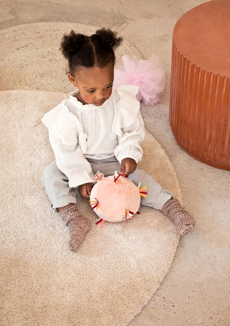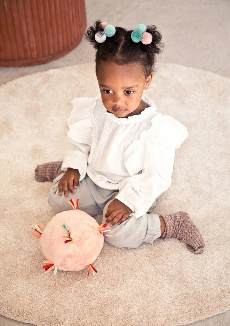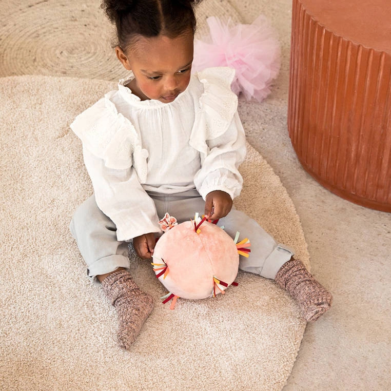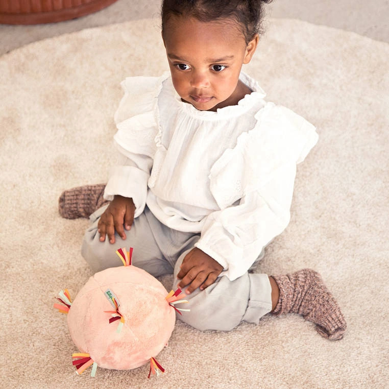 Piłeczka Sarenka Stella to wyjątkowa zabawka sensoryczna, stworzona z myślą o potrzebach najmłodszych dzieci. Miękka, przyjemna w dotyku, wykonana z różowego futerka i ozdobiona kolorowymi wstążkami oraz wypustkami – zachęca maluszka do eksploracji i zabawy.